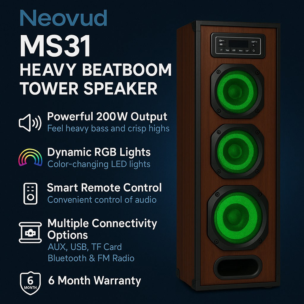 Neovud MS31 200W Heavy BeatBoom RGB Lightings Tower Speaker 6 month Warranty