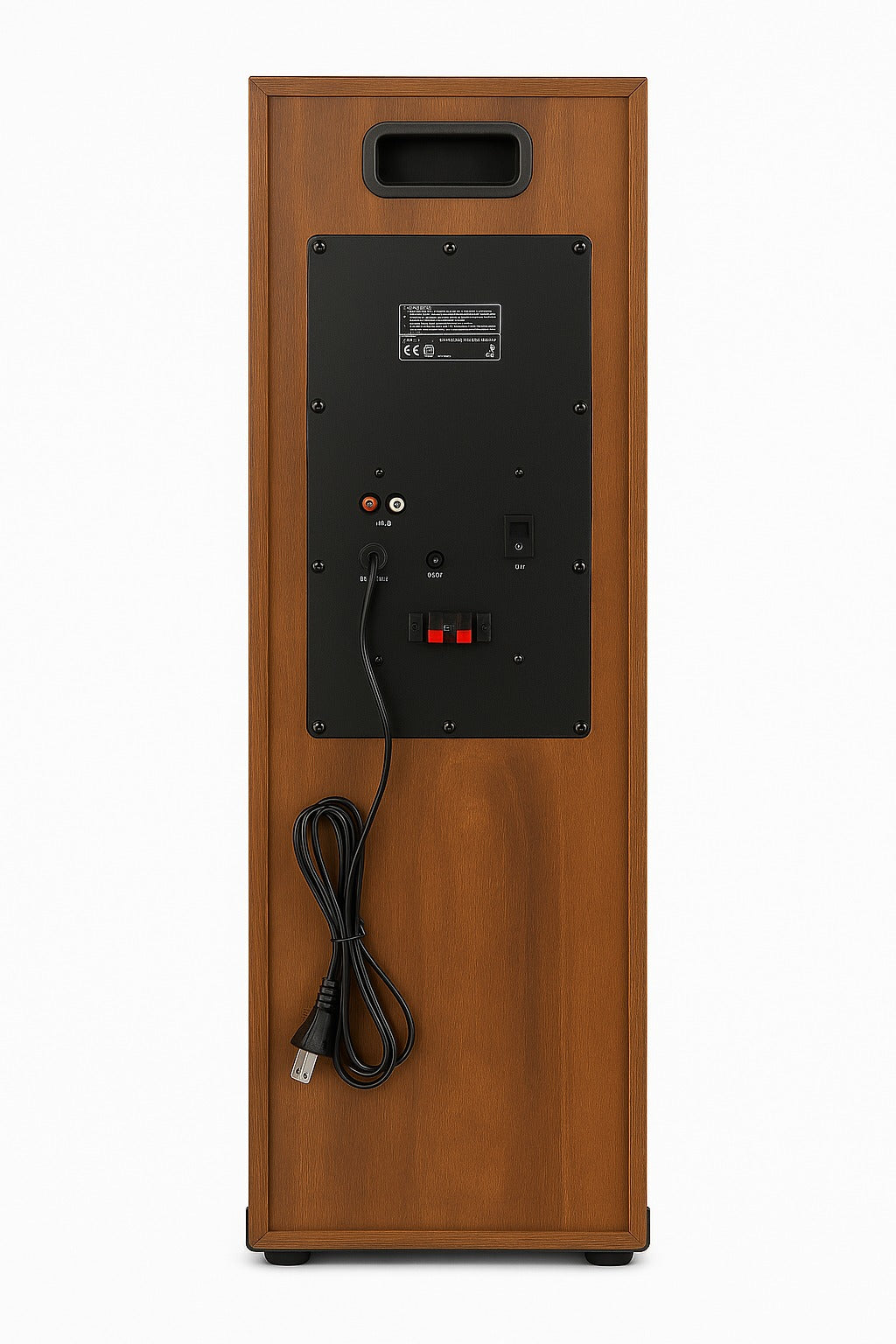 🪵 Sturdy Wooden Cabinet – Premium wooden finish for rich acoustics and a stylish look.